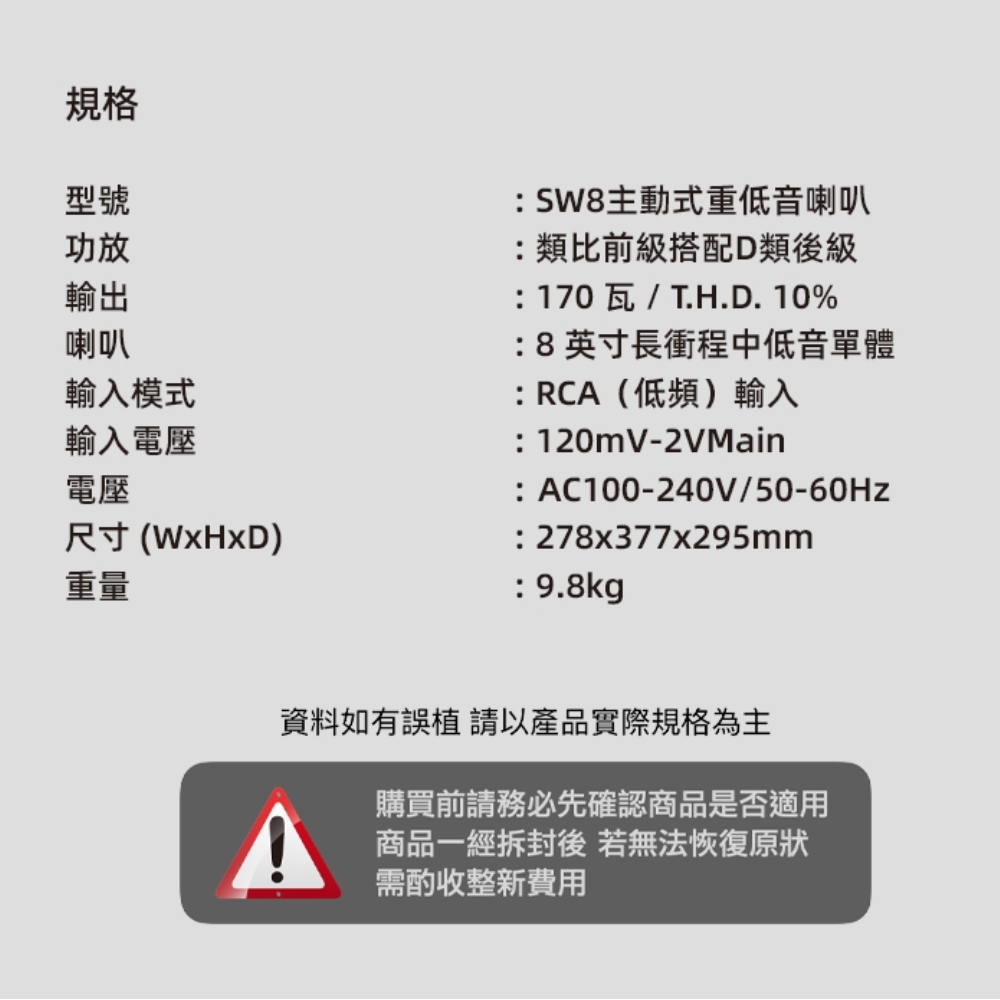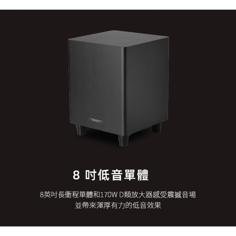 .8 吋長衝程低音單體 延展性好 覆蓋範圍廣 低頻可達 25Hz