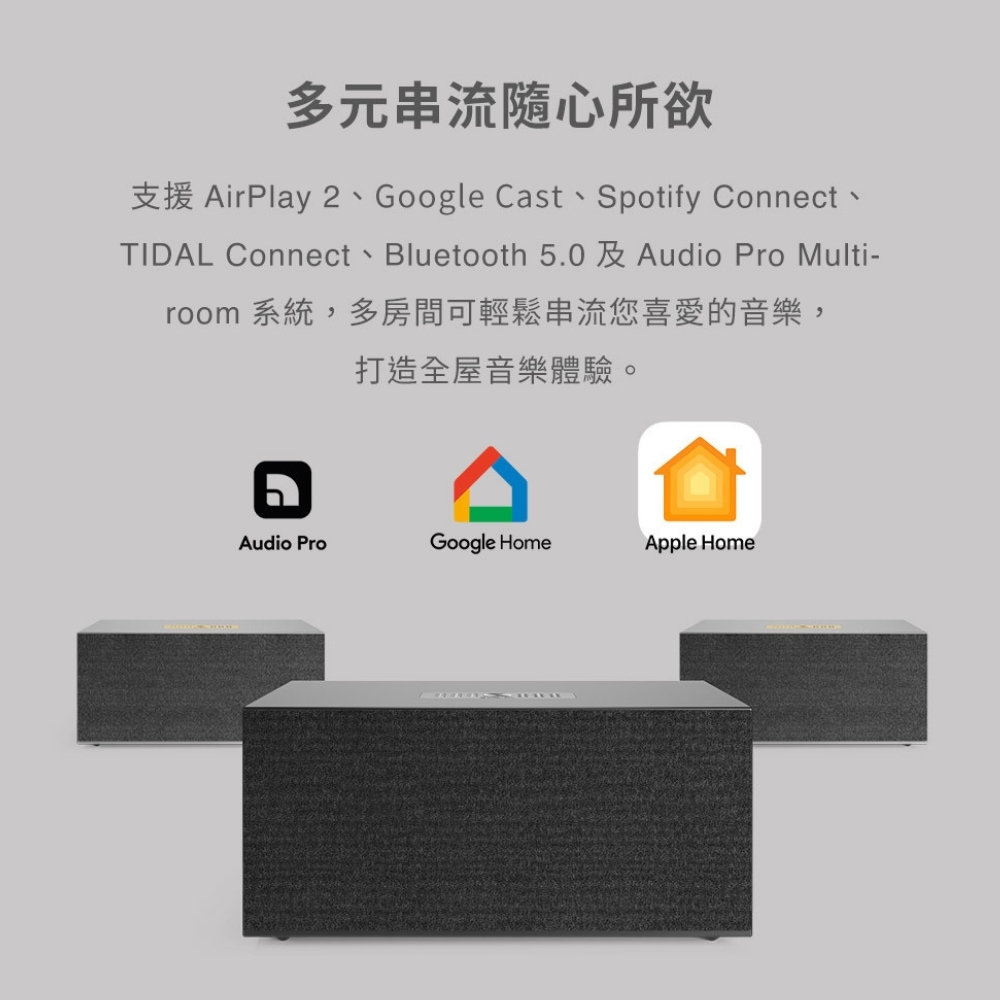 完美兼容|兼容 Apple Home 、Google Home、Audio Pro Control