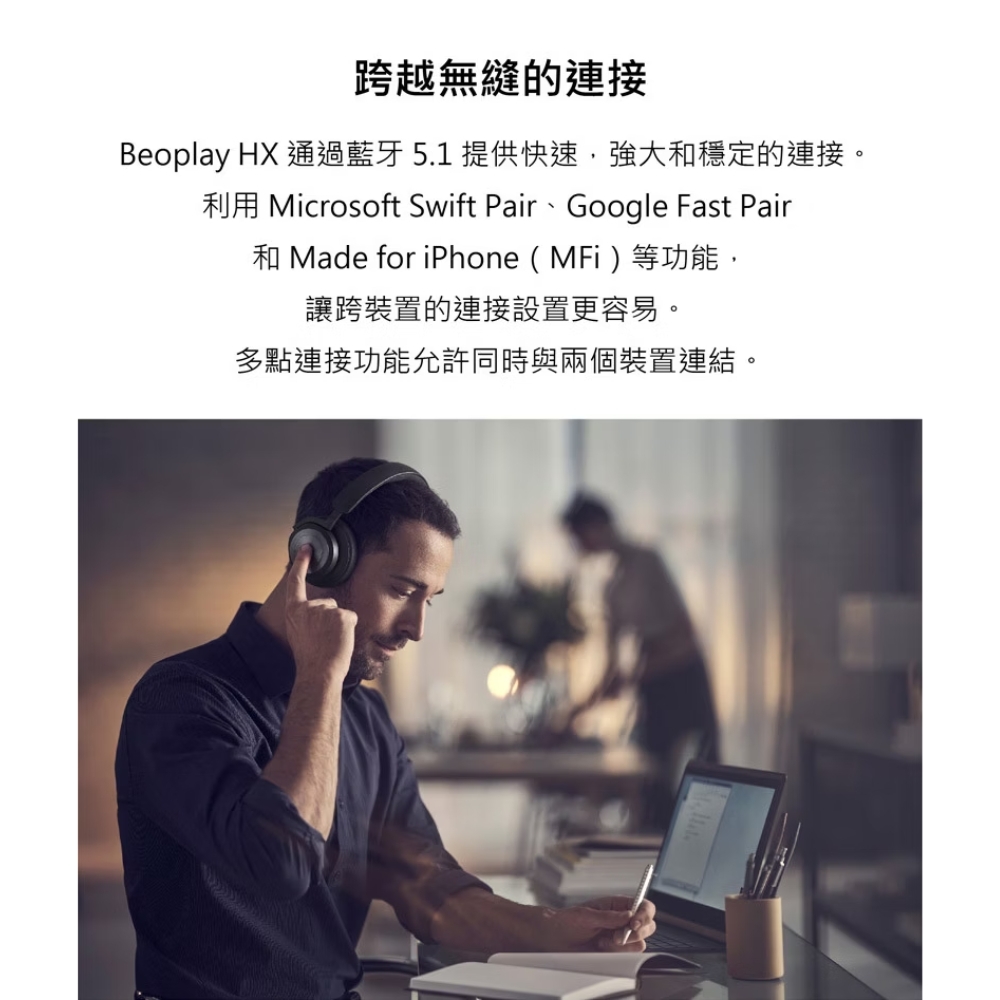 ●自適應主動降噪(ANC)創造獨有聲音空間 / 多點連結,使2個主動式裝置同時運作