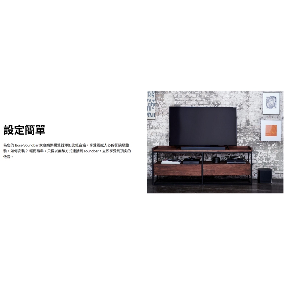 為您的 Bose Soundbar 家庭娛樂揚聲器添加此低音箱,享受震撼人心的影院級體驗。如何安裝? 輕而易舉。只要以無線方式連接到 soundbar,立即享受到頂尖的低音。