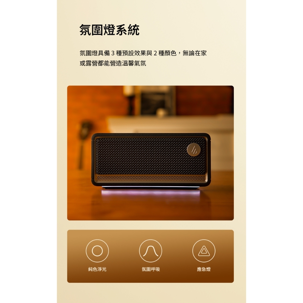 🔅 燈光模式:氛圍呼吸、純色淨光、應急燈