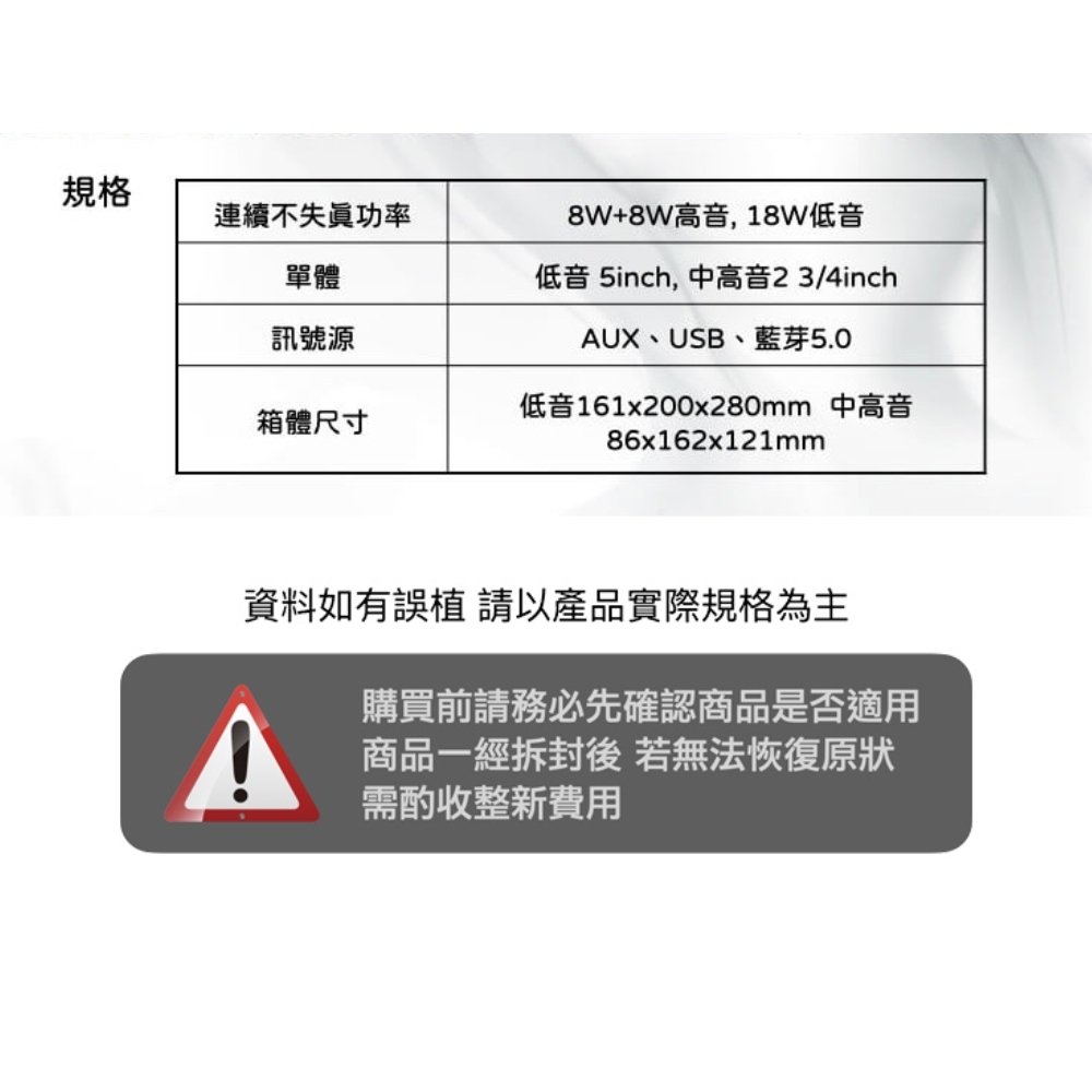 ▶︎ 喇叭尺寸:(衛星)86×162×121mm(低音)161×200×280mm