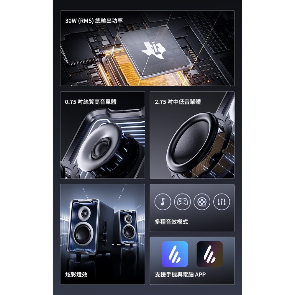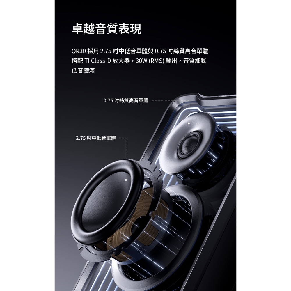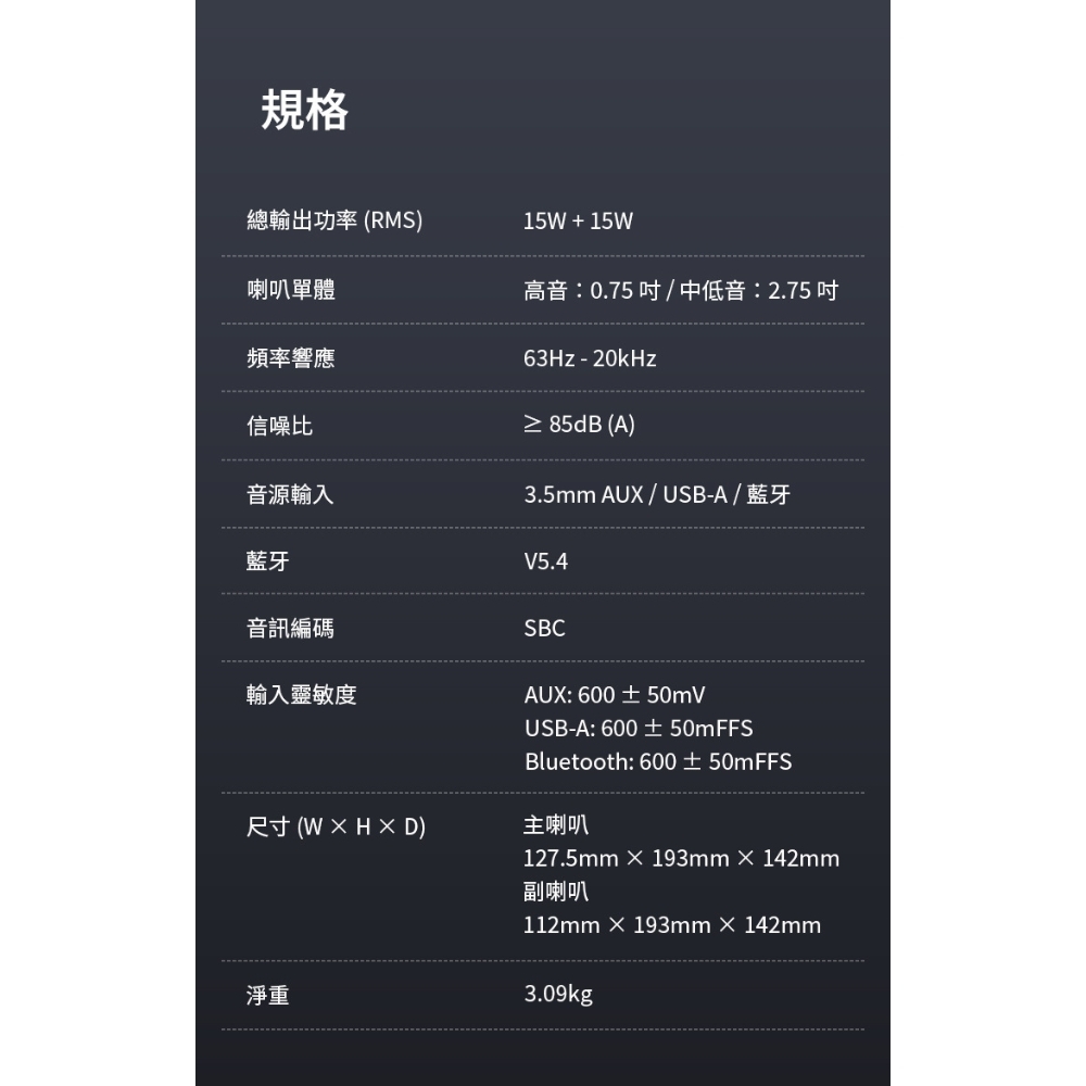 .2.0聲道立體聲場|15+15W RMS 功率