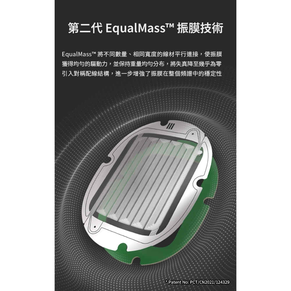 .全新升級第二代 EqualMass™ 振膜技術 0 失真音質