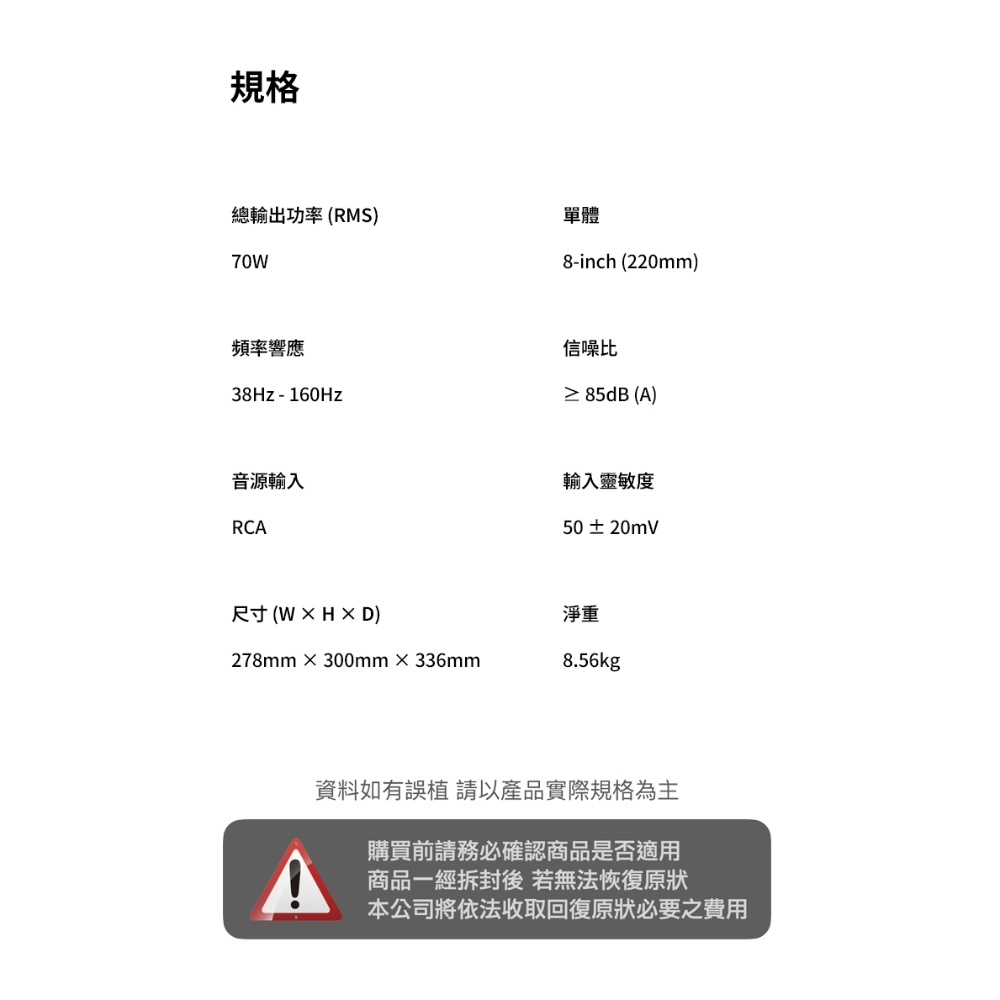 .大口徑單體 延展性好 覆蓋範圍廣 低頻可達 38Hz