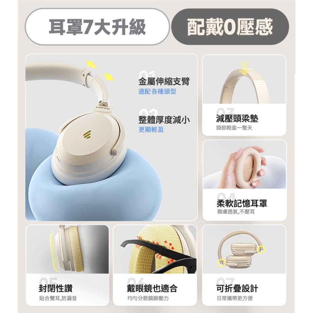 .耳罩輕量化 可折疊收納 多段頭戴調節 透氣 0 壓感