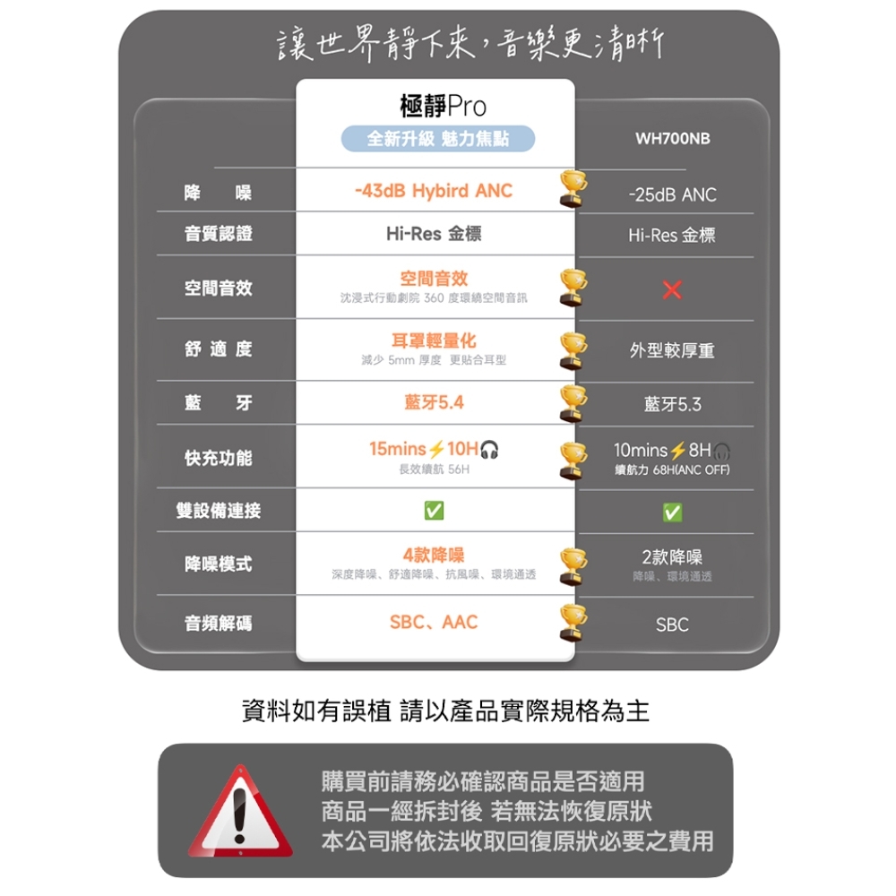 .主動式 ANC -43dB 深度降噪|舒適降噪|環境聲通透|防風噪