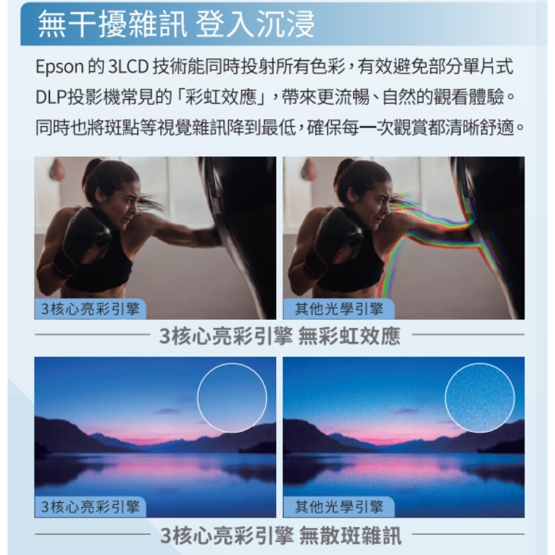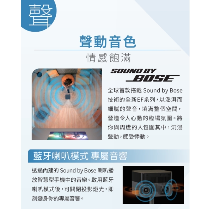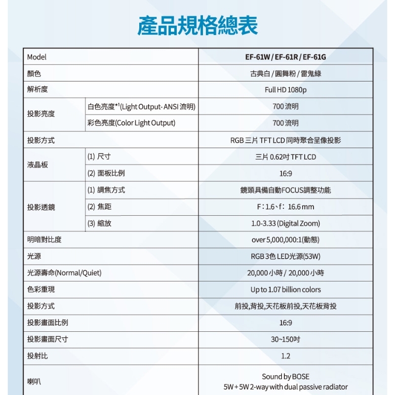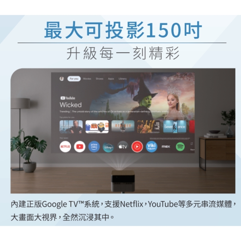 第一款具備3LCD+RGB LED智慧迷你投影機,700ANSI流明畫面,內建正版Google TVTM系統,支援Netflix, YouTube等串流媒體,快速智慧校正與校色,使用輕鬆。