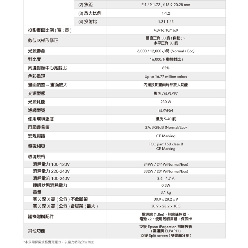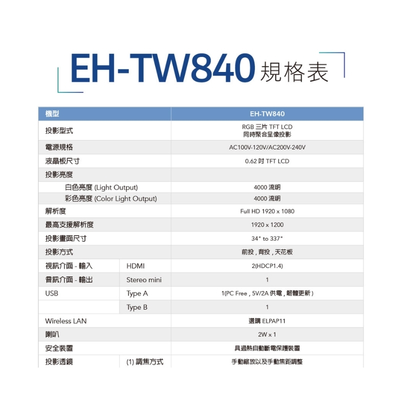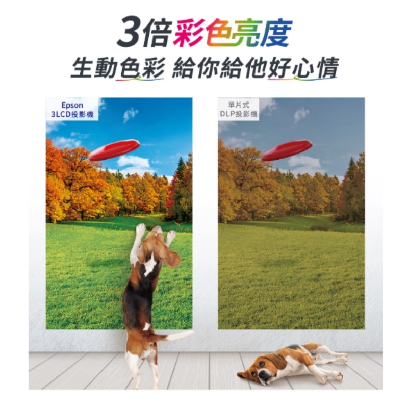 Full-HD高解析,3倍彩色亮度的高亮彩投影機,白色/彩色亮度4,000流明,不關燈也能清楚投影。