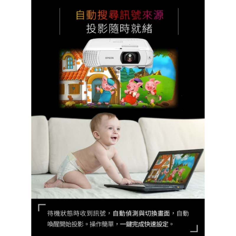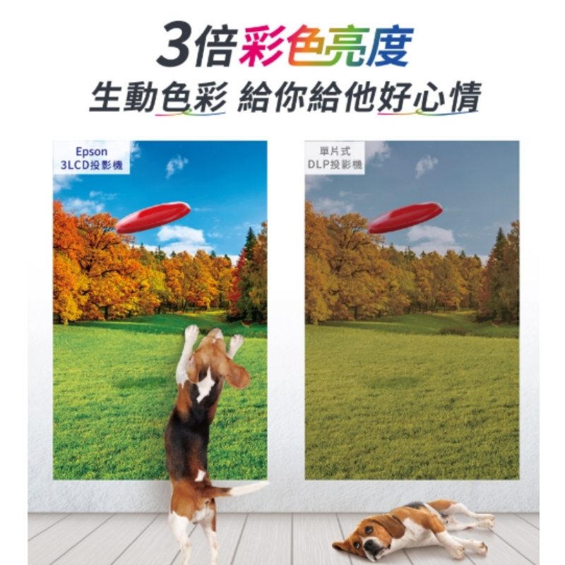 3倍彩色亮度的高亮彩投影機,白色/彩色亮度3,400流明,不關燈也能清楚投影。