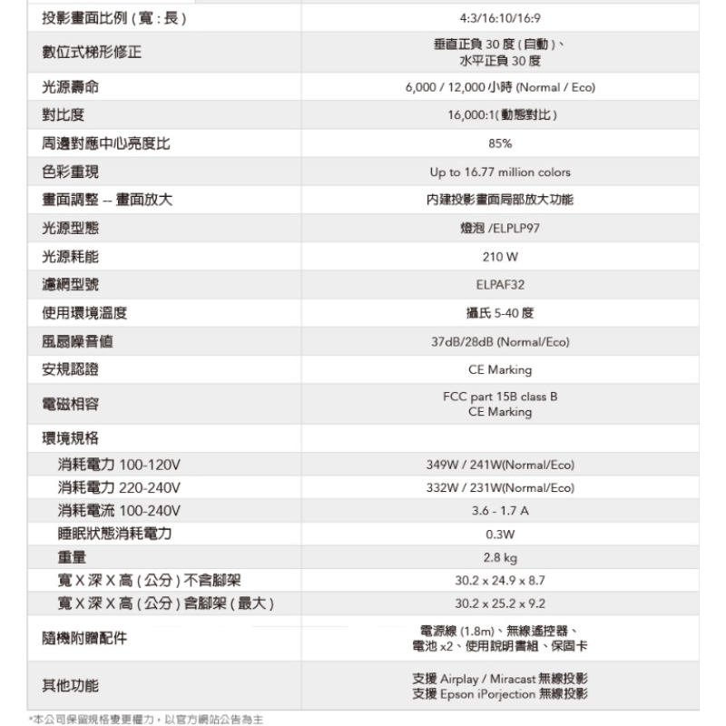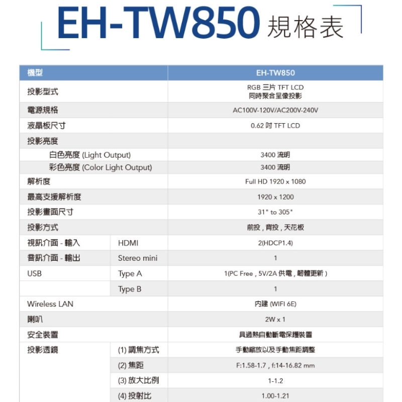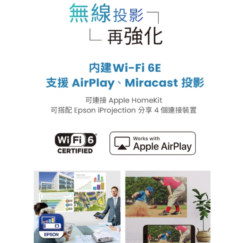 支援Wi-Fi 6E以及AirPlay多項無線投影功能。微短焦投影、短距離畫面更大。