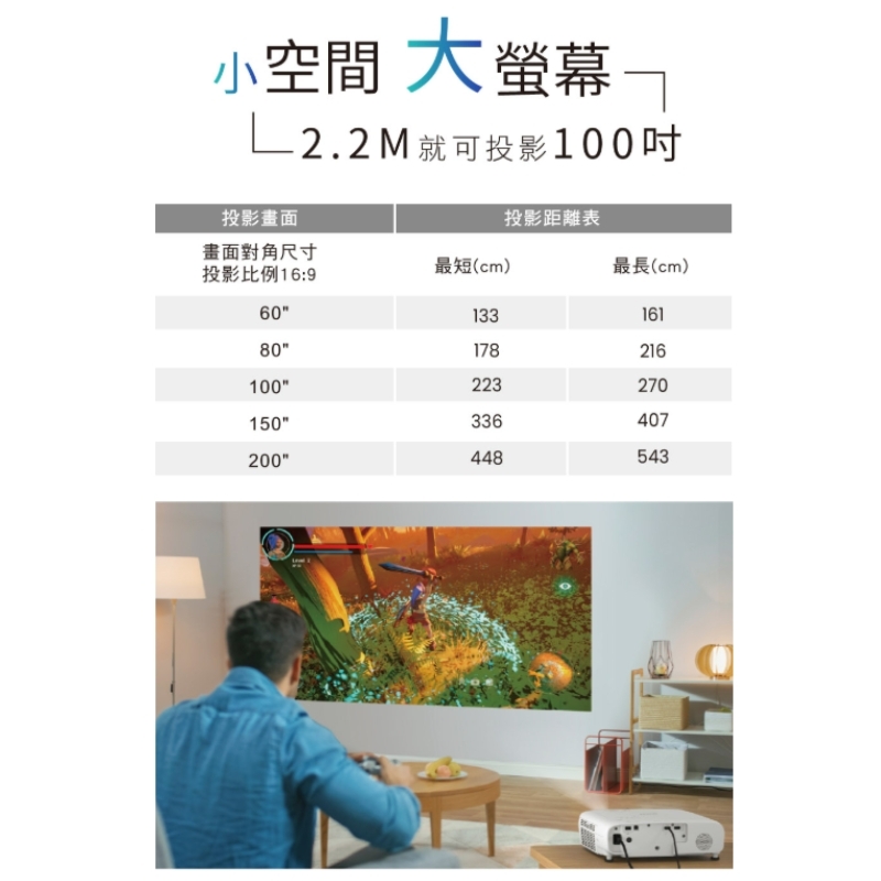 微短焦投影、短距離、大畫面