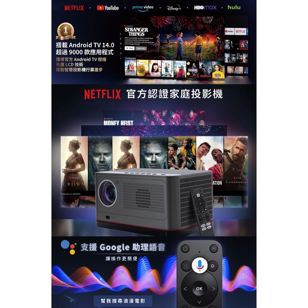 最新Android TV 14.0系統及正版授權 Netflix、YouTube