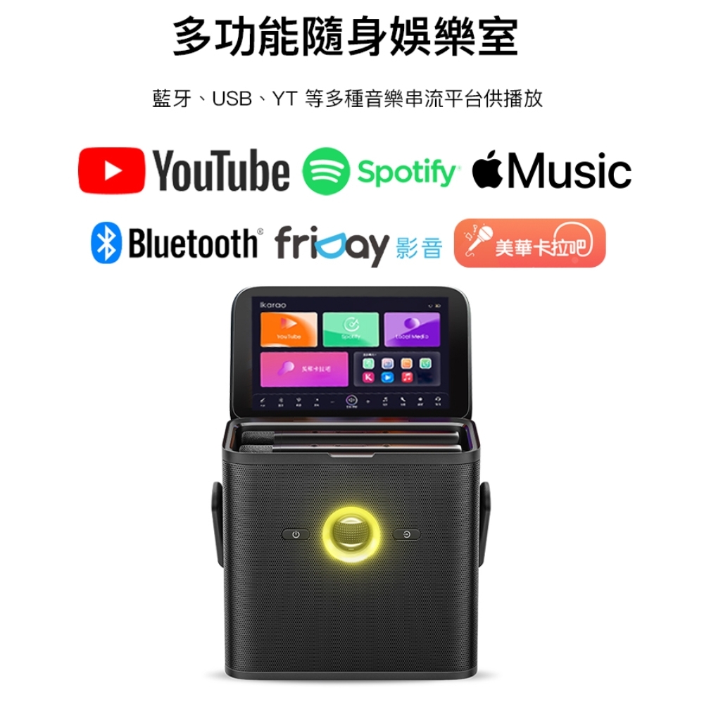 .行動 KTV 一機完美整合 螢幕 x 喇叭 x 無線麥克風