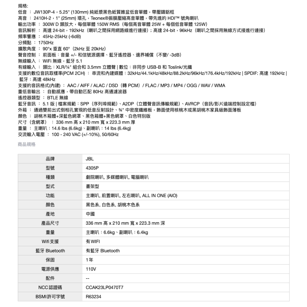 ❖ 300W 系統總功率和 24 位/192kHz 高分辨率 DAC