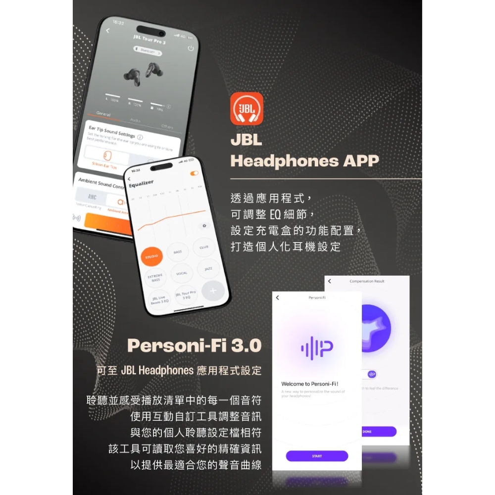●Personi-Fi 3.0 : 透過app啟動測驗定義出您的聽力,生成您個人化最佳的聲音曲線