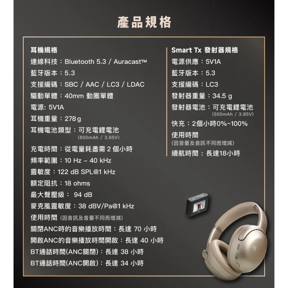 ●JBL Spatial 360 沉浸式空間音效搭配頭部追蹤,帶給您更深刻的沉浸式聆聽體驗