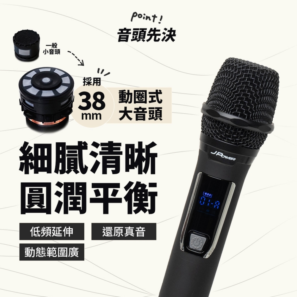 ◆ 專業級麥克風採用38mm動圈式大音頭