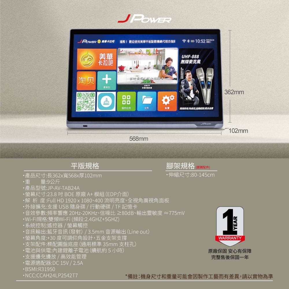 ・解 析 度:Full HD 1920 x 1080、400 流明亮度、全視角廣視角面板