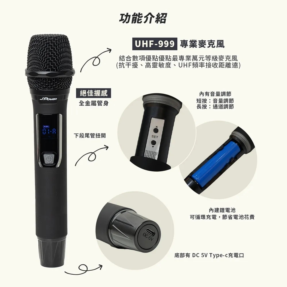 ◆ 專業級麥克風採用38mm動圈式大音頭