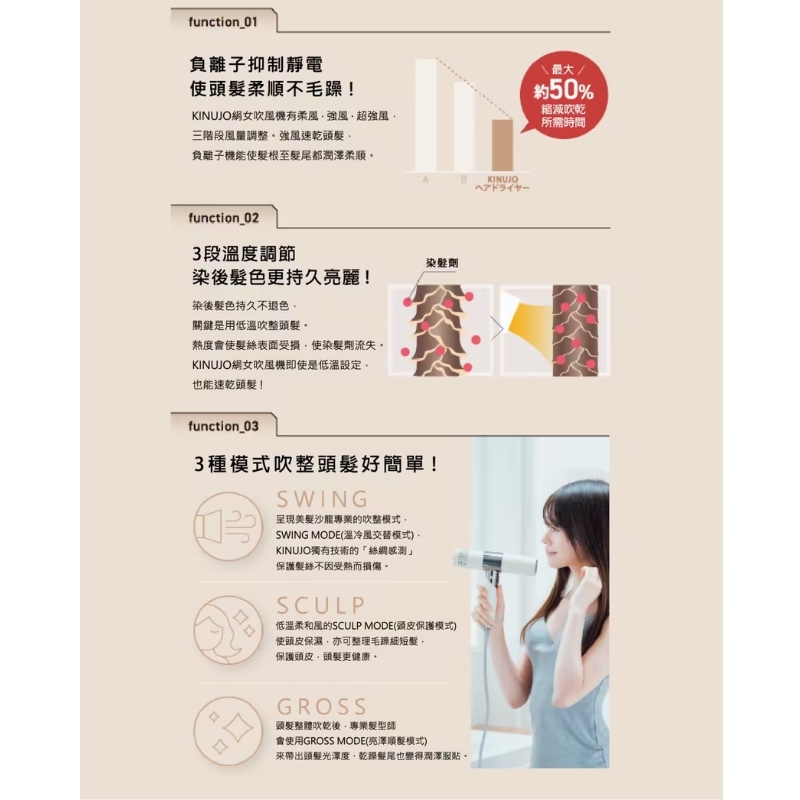 ✦ 負離子抑制靜電柔順頭髮不毛躁