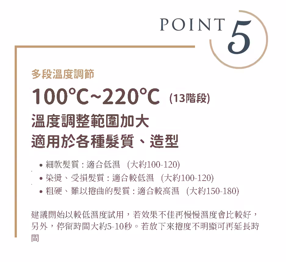 温度調節 : 約100-220%C (每10度一單位)