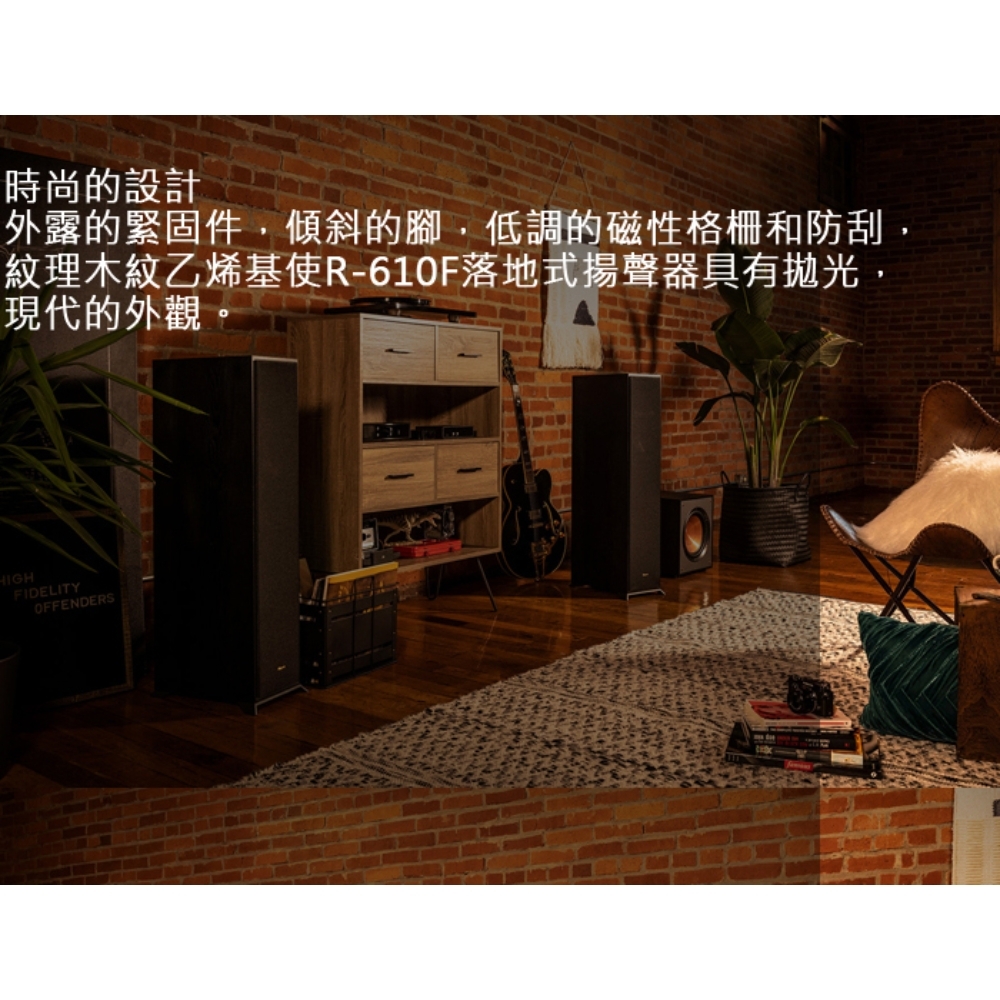 R-610F落地式揚聲器僅高37英寸,能夠產生深沉的低音擴展,通過我們的標誌性Klipsch號角高音揚聲器和旋轉銅質IMG低音揚聲器提供令人難以置信的聲音,將您的電影和音樂帶到另一個層次