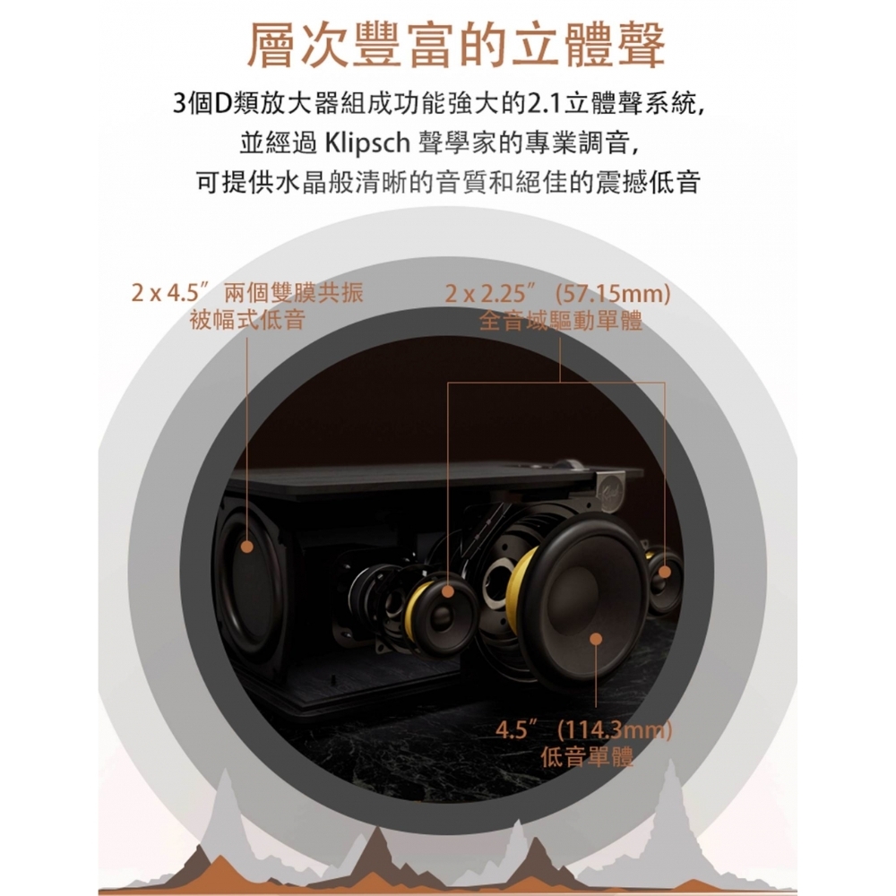 單體:2.25 吋全音域單體 × 1,4.5 吋長衝程低音 × 1,4.5 吋被輻射低音 × 2