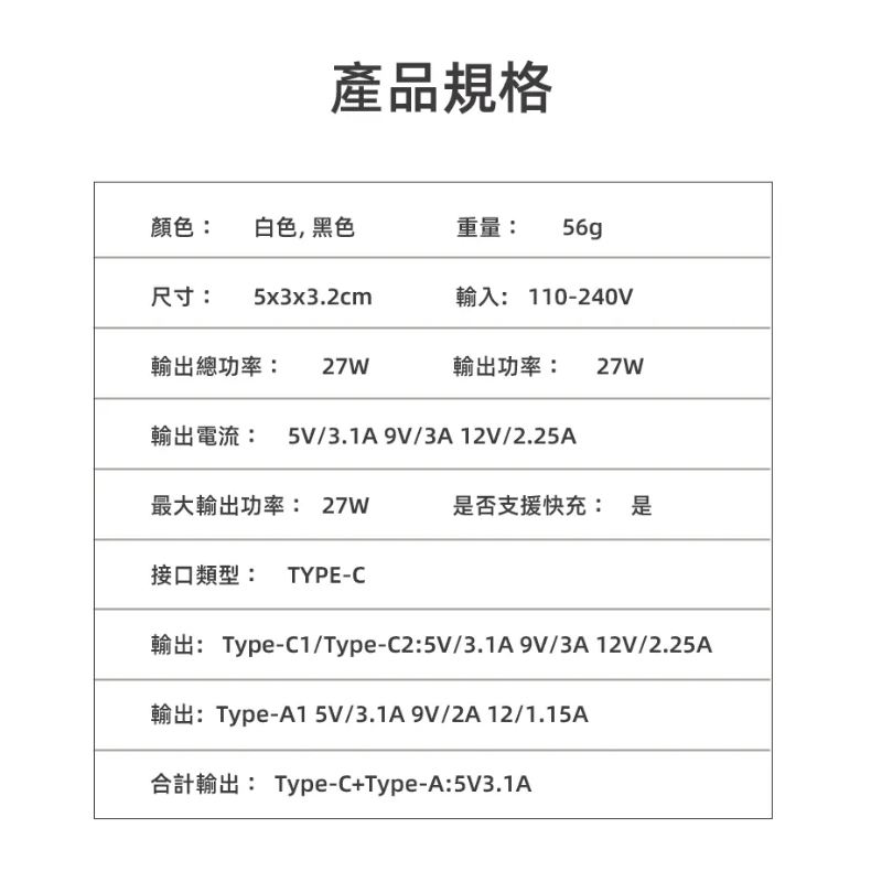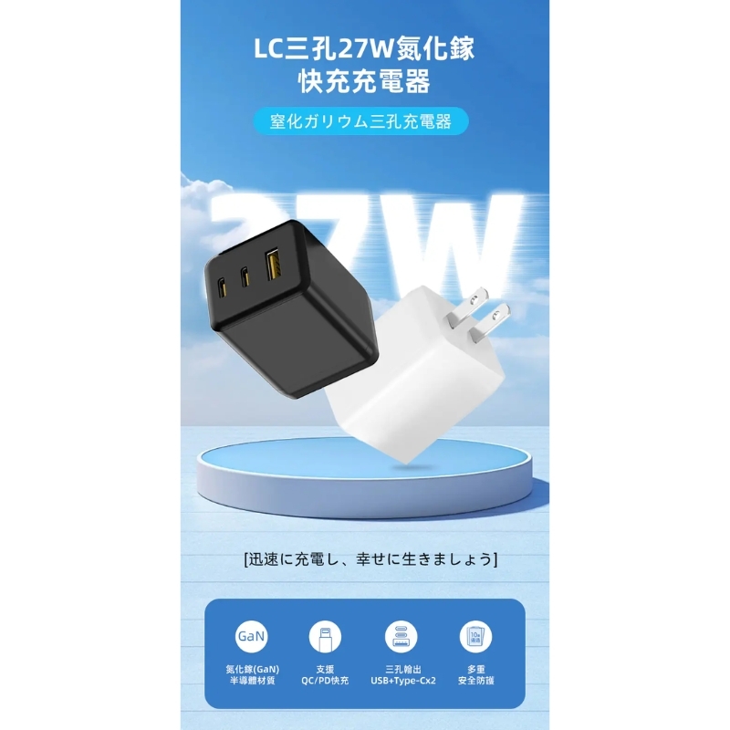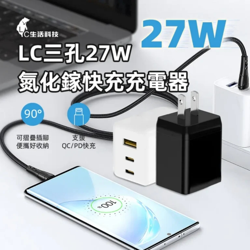 【LC生活科技】三孔27W氮化鎵快充充電器