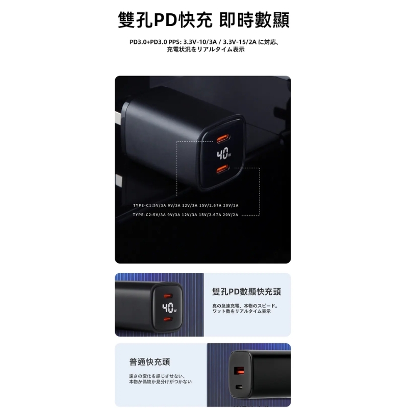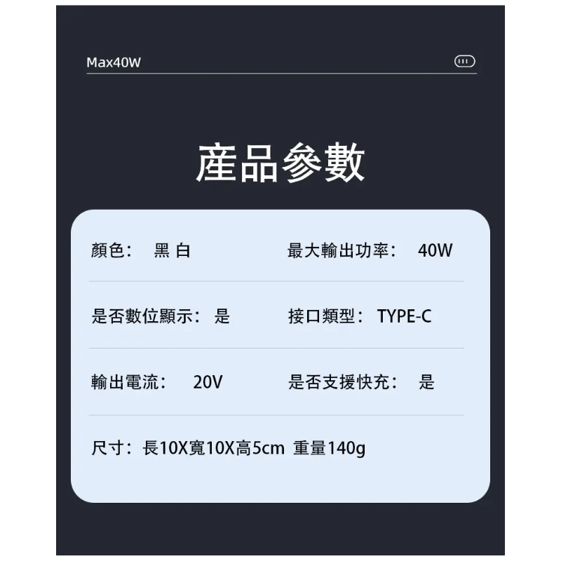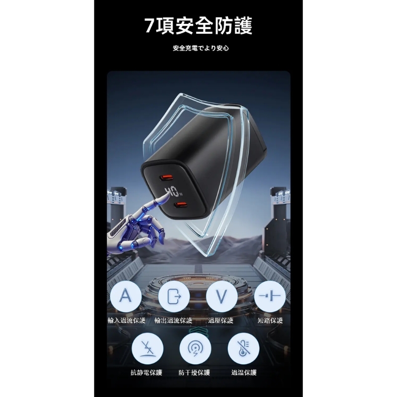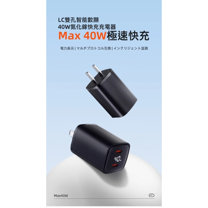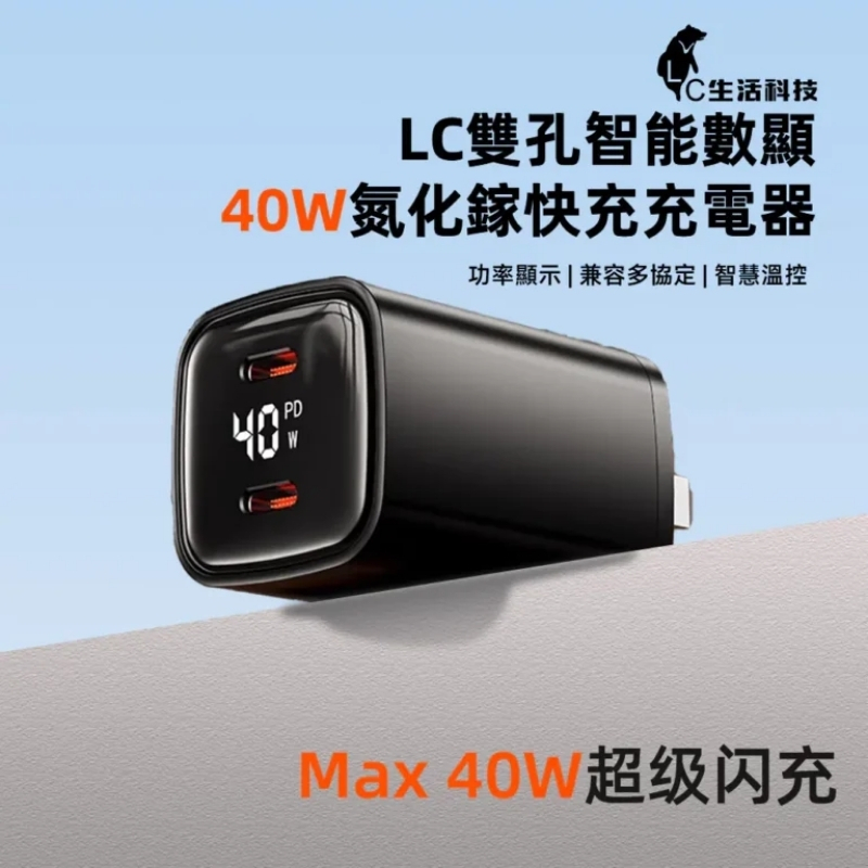【LC生活科技】雙孔智能數顯40W氮化鎵快充充電器