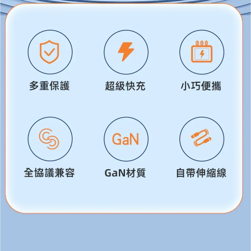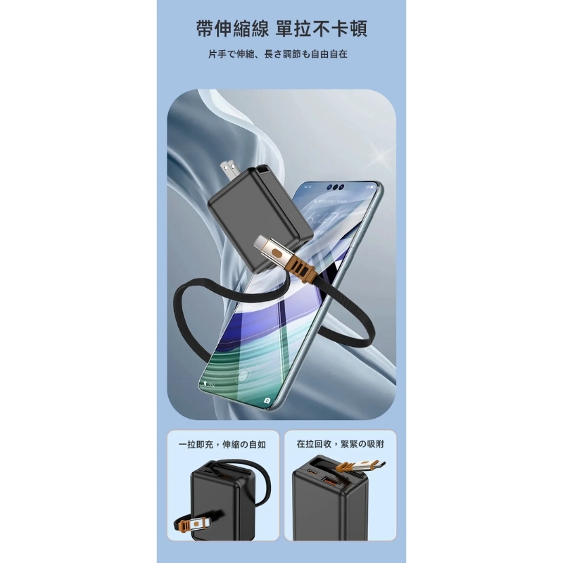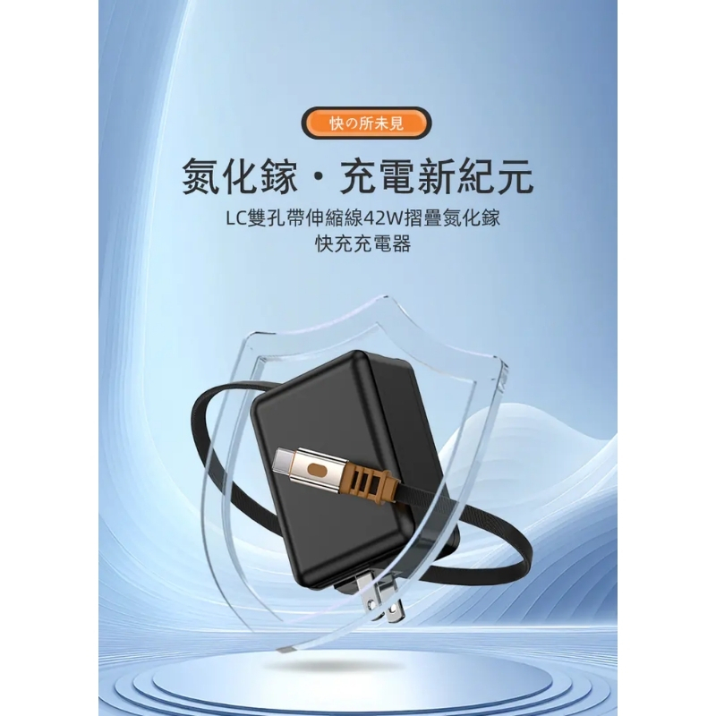 【LC生活科技】雙孔帶伸縮線42W摺疊氮化鎵快充充電器