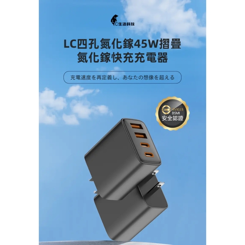 【LC生活科技】四孔氮化鎵45W摺疊氮化鎵快充充電器