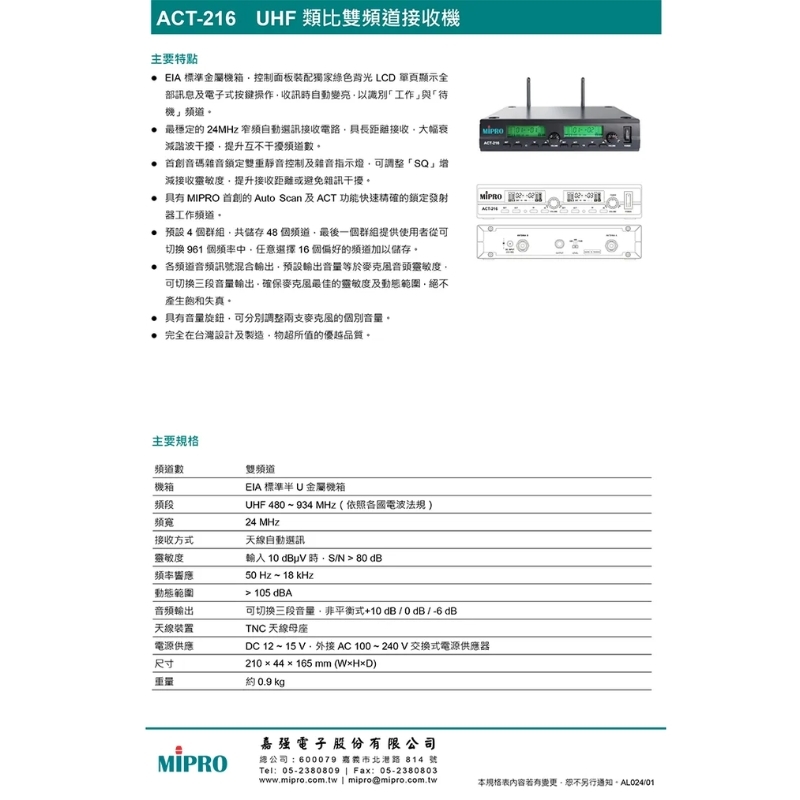 內建24MHz窄頻自動選訊電路,提供穩定的長距離接收,減少諧波干擾,提升互不干擾頻道數