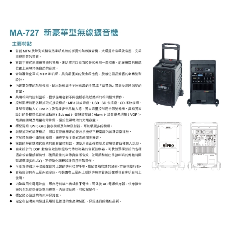 MA-727-MIPRO創新整合無線麥克風與擴音系統,自推出以來,憑藉多功能、高品質及卓越音質,獲得廣泛使用與認可,成為品牌的核心產品