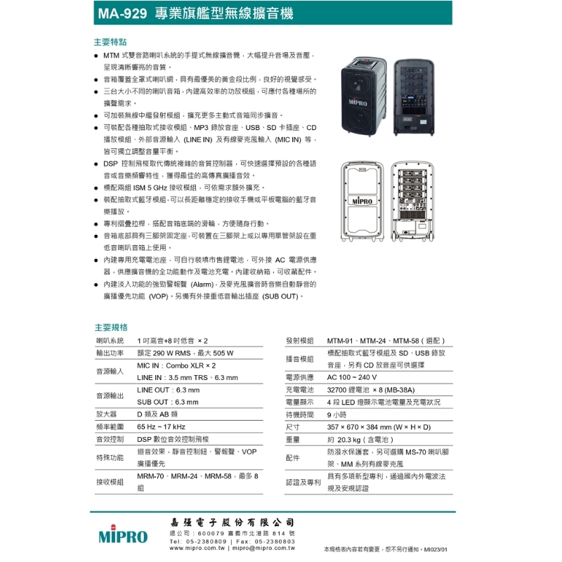 MA-929 PLUS-MIPRO創新整合無線麥克風與擴音系統,自推出以來,憑藉多功能、高品質及卓越音質,獲得廣泛使用與認可,成為品牌的核心產品