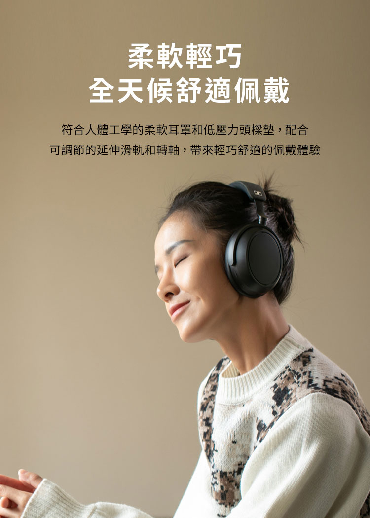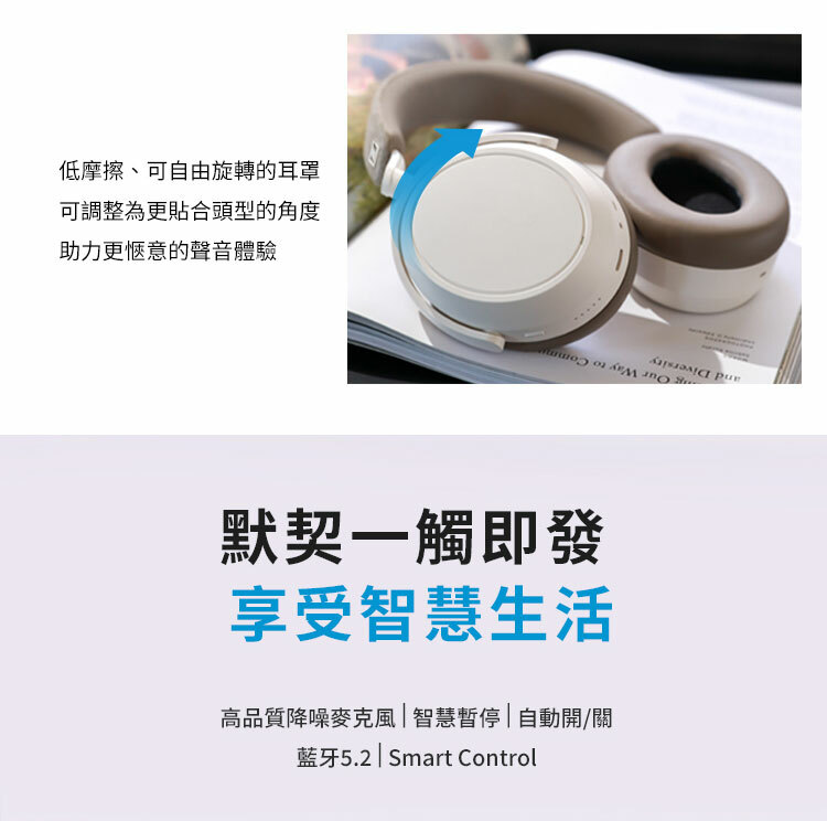●旋轉式支架搭配柔軟耳罩及低壓頭樑 配戴舒適