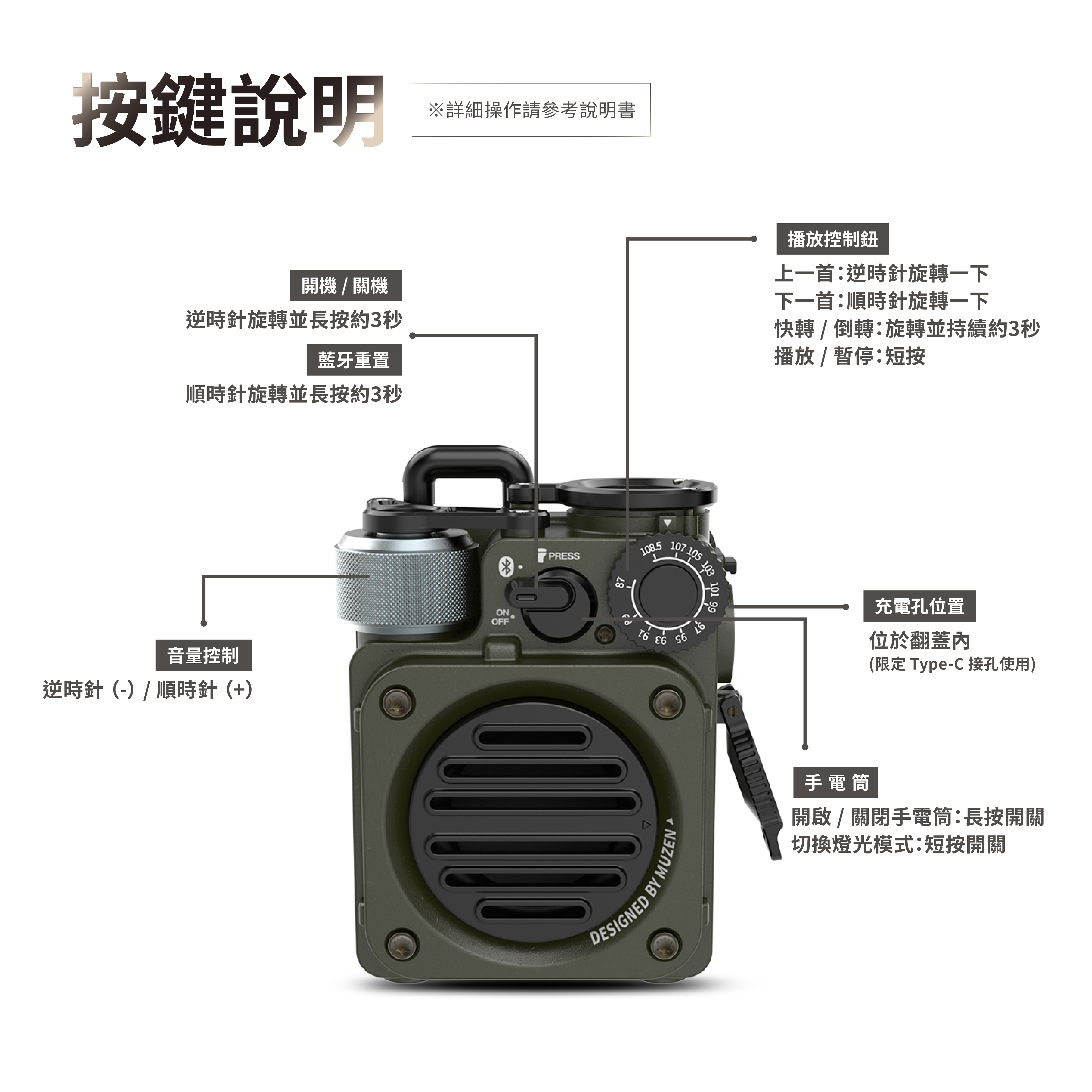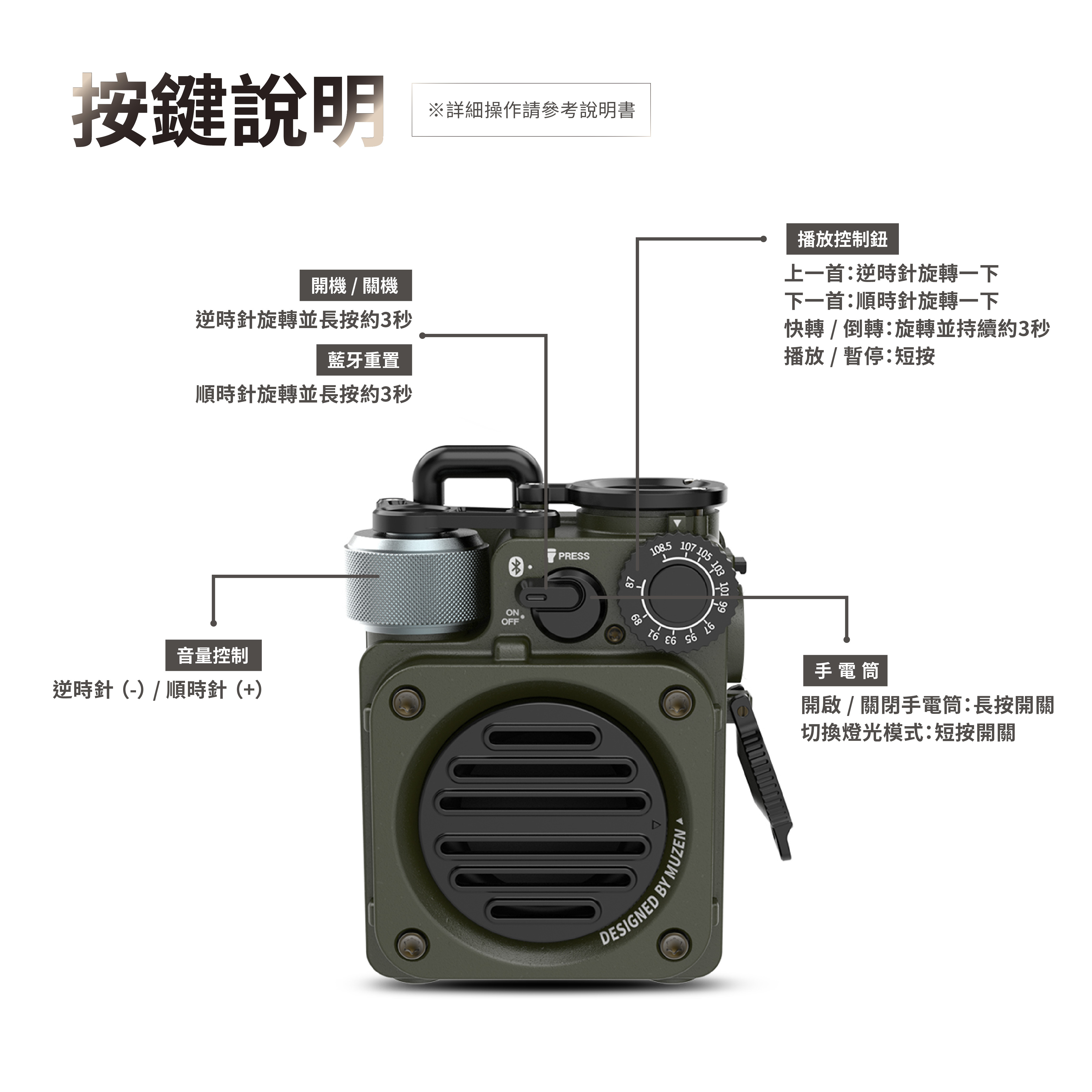 ●內建LED 三模式照明