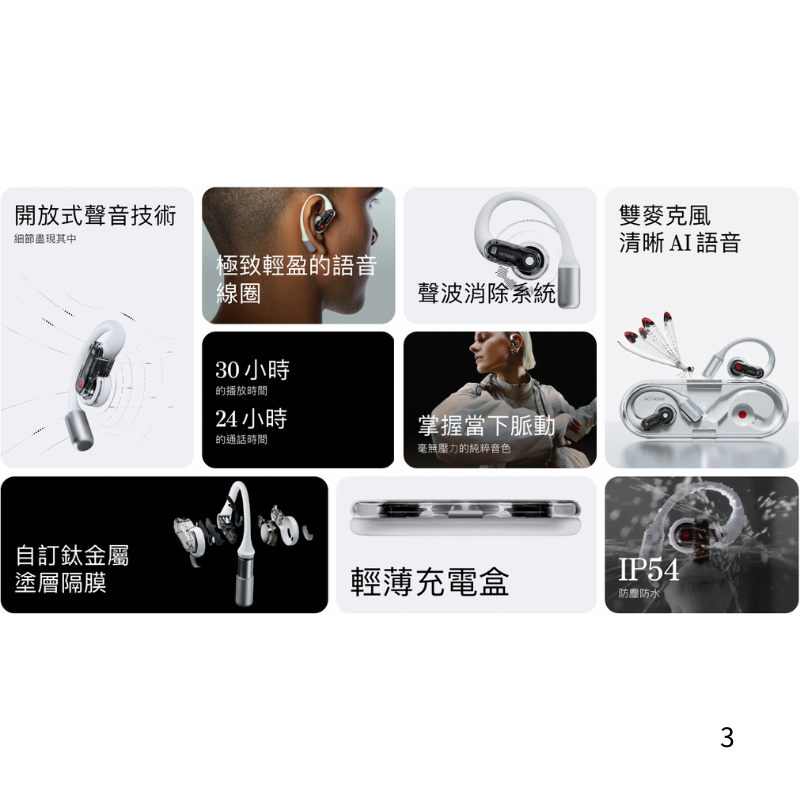 優異的感知技術 Ear (open) 採用獨特的喇叭設計,可呈現開放式音場
