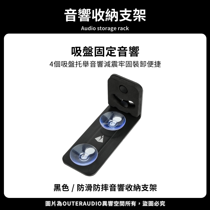包裝清單:條形音箱支架2個+黑色廣告釘膠塞4套+黑色EVA帶背膠2片+音箱支架3M VHB膠4片+蘑菇頭吸盤4個+安裝說明卡1張(紙盒包裝)