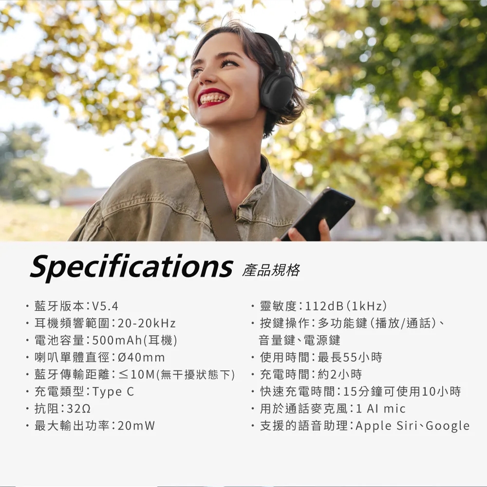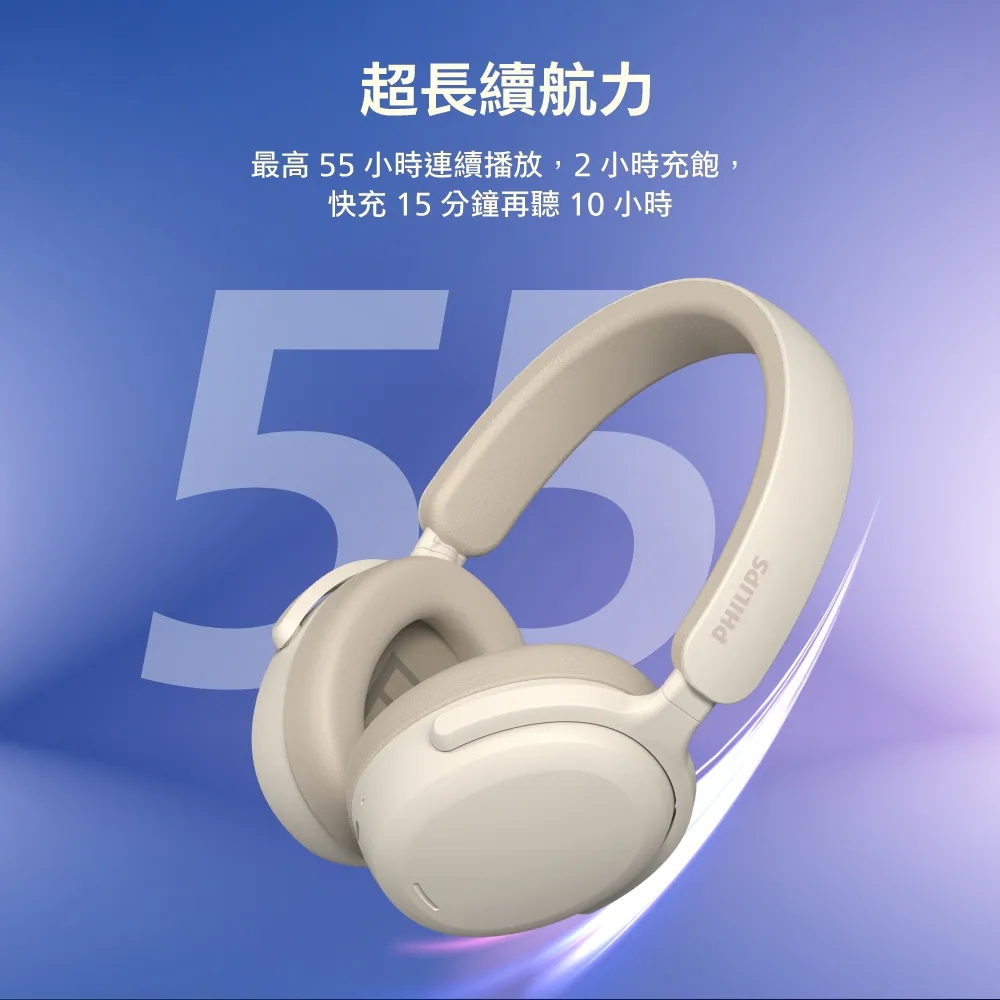 最高 55 小時連續播放,快充 15 分鐘再聽 10 小時