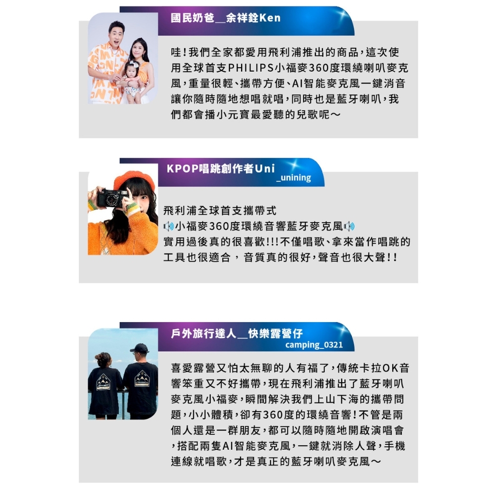 ‧ 四種多色燈光模式喇叭螢幕增添氣氛,播放時間可長達7-15小時(依實際使用情況而定)。