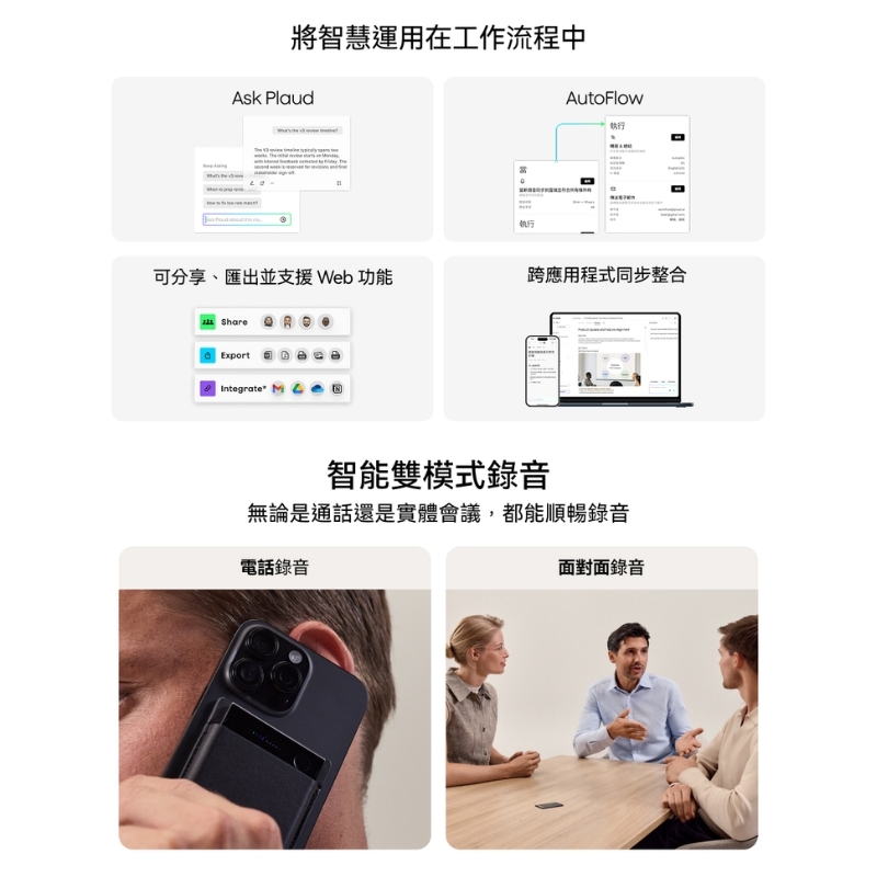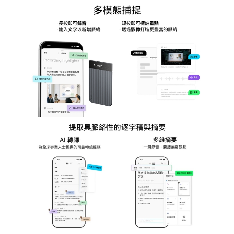 ●最聰明的AI智慧筆記錄音卡「捕捉→提取→運用」多模態整合,助力提升工作效率。