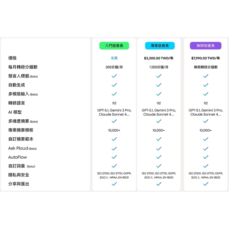 ●承襲前代「AI記錄/總結 一站式解決方案」再進化,採用持續更新的先進 AI 模型。
