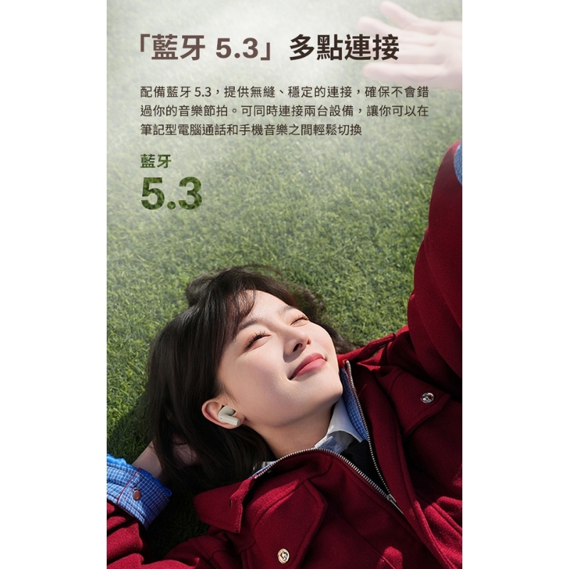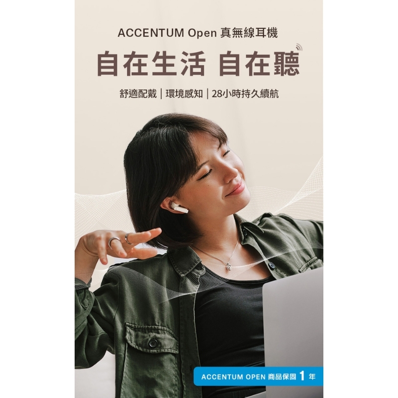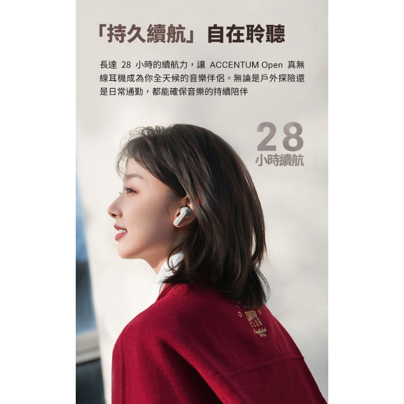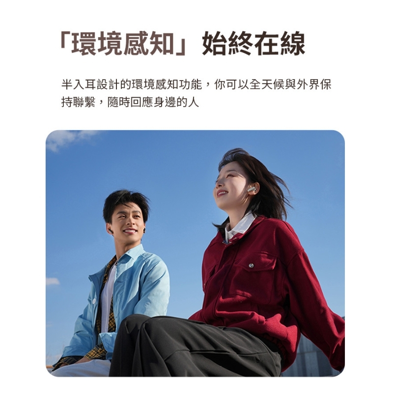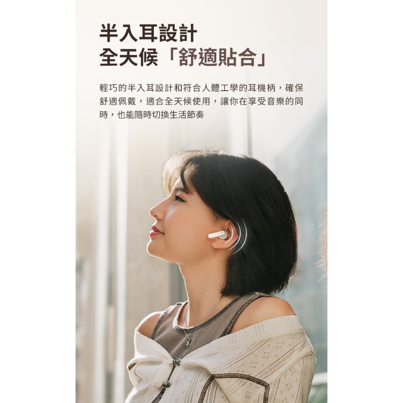 ★透氣佩戴– 輕量半開放式設計,配有符合人體工學的耳柄,確保舒適無壓力、疲勞或傳統入耳式耳機的隔離感。