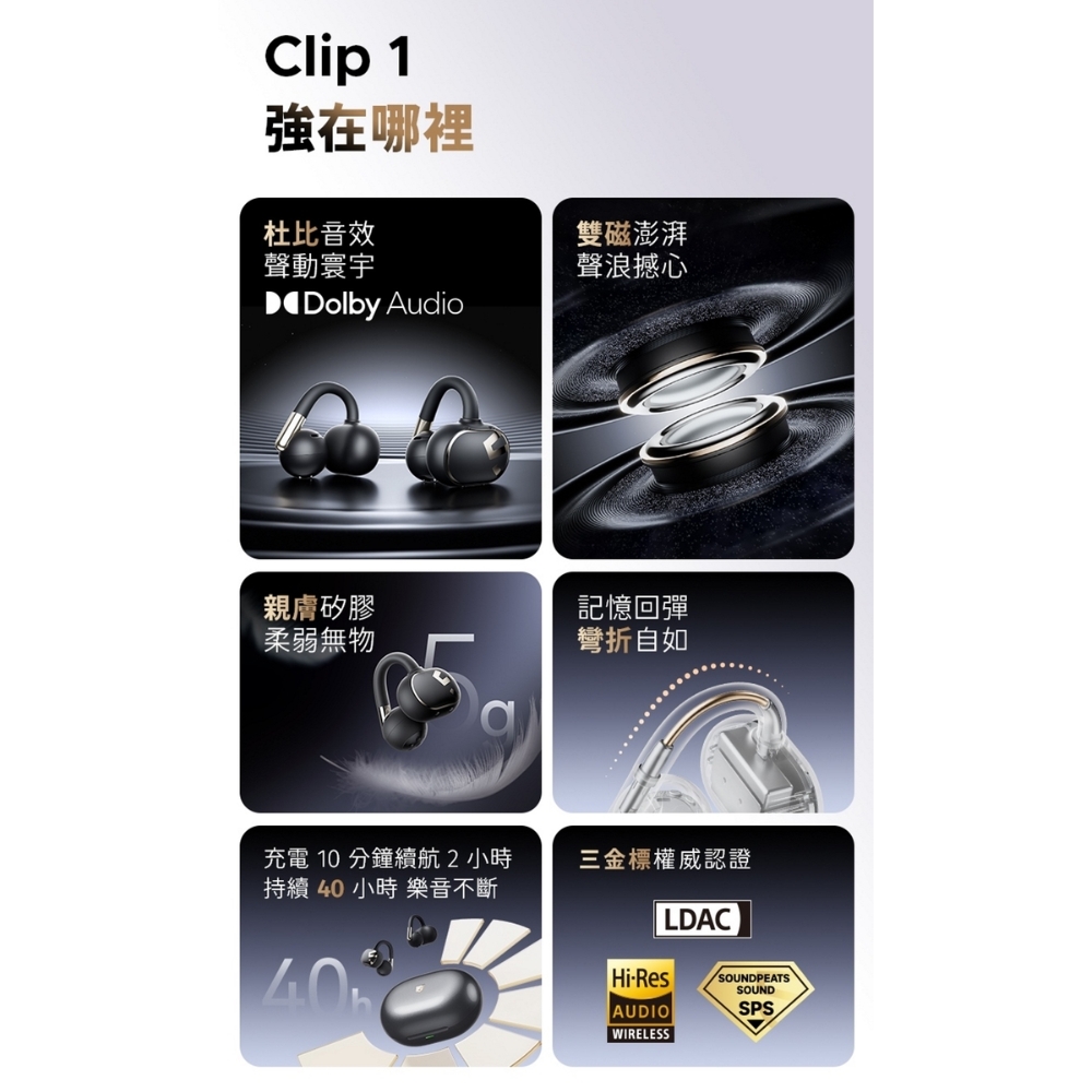 【SOUNDPEATS】Clip1 耳夾式無線藍牙耳機