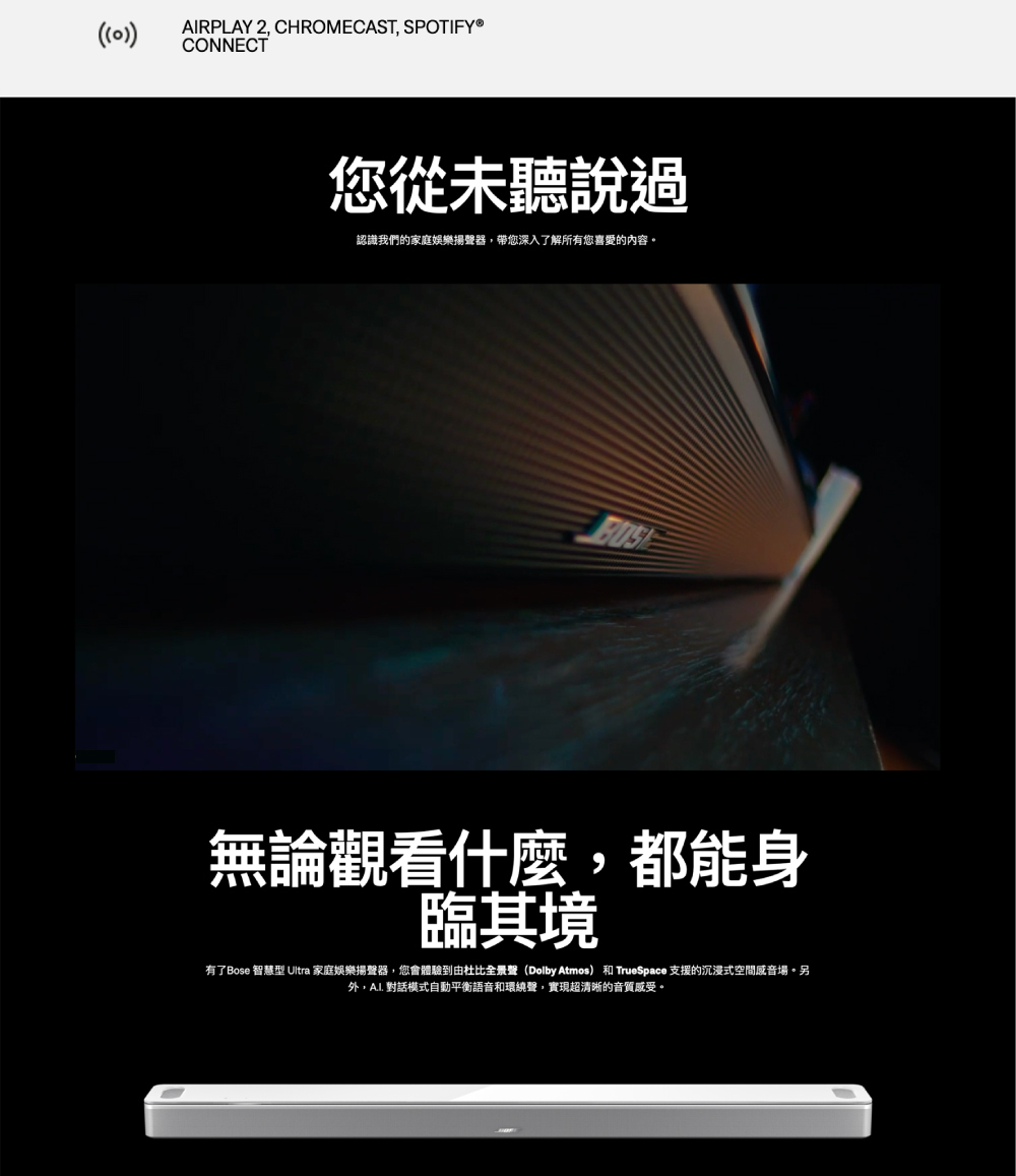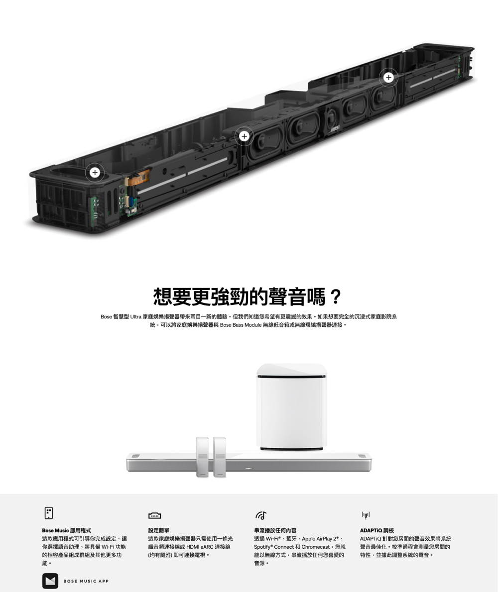 可透過Wi-Fi、藍牙、Apple AirPlay 2及Spotify Connect串流音樂