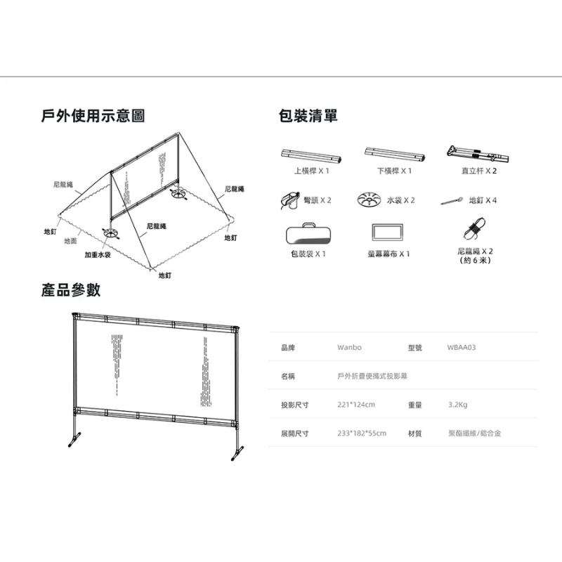 ※100吋大螢幕,140°廣視角 - 提供寬廣觀影體驗,適合戶外娛樂