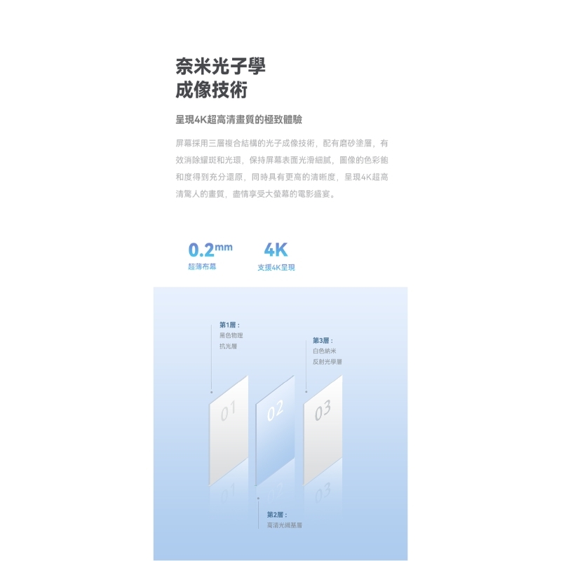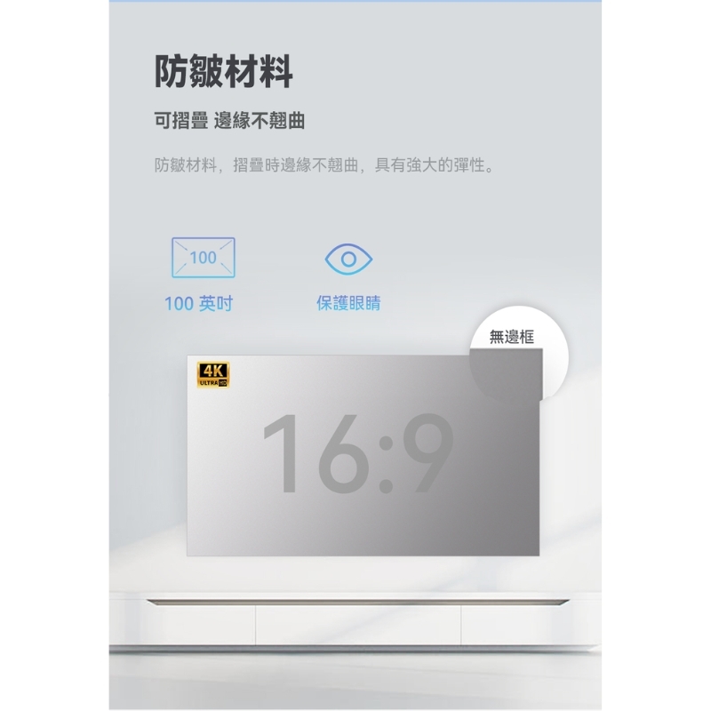 ※超薄耐用:0.2mm 超薄布幕,輕便易攜且材質防皺
