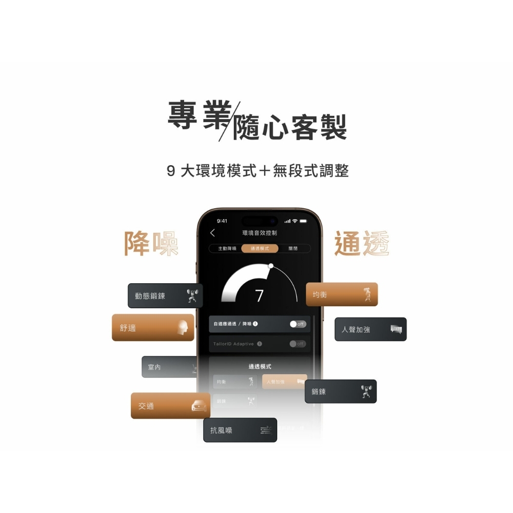 ●9大環境模式 + 無段式調整