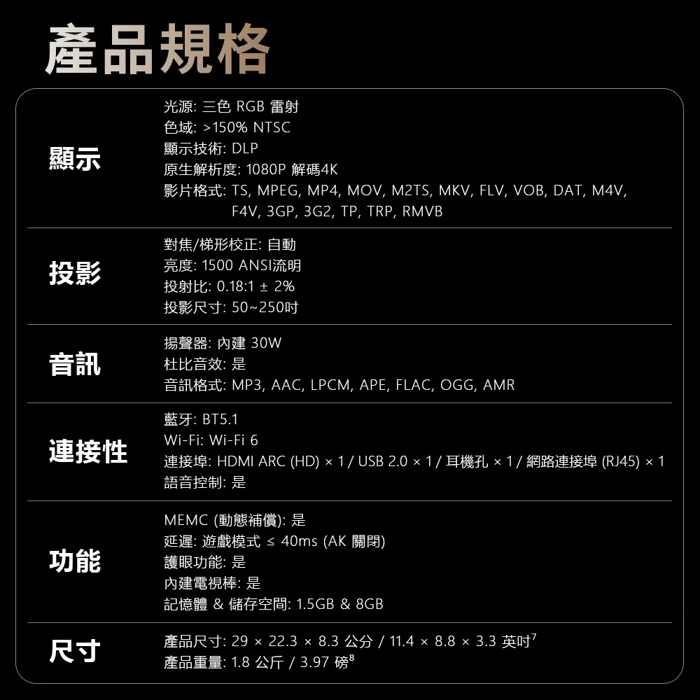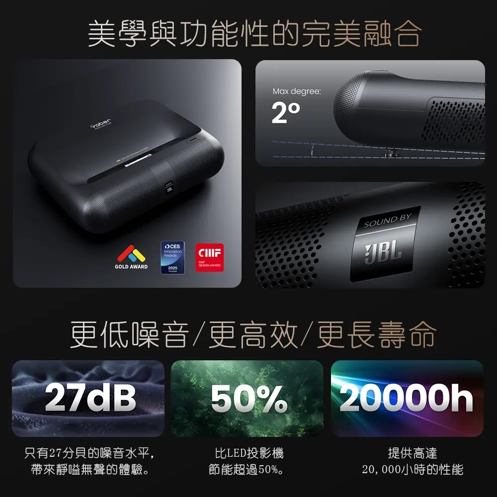 【YABER】黑鯊K300S 雷射超短焦投影機